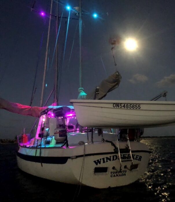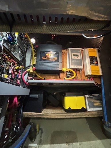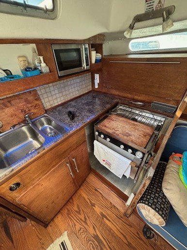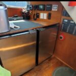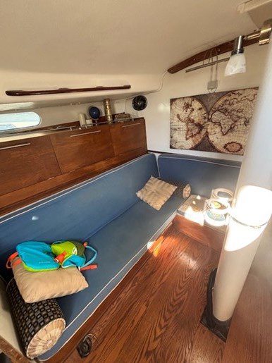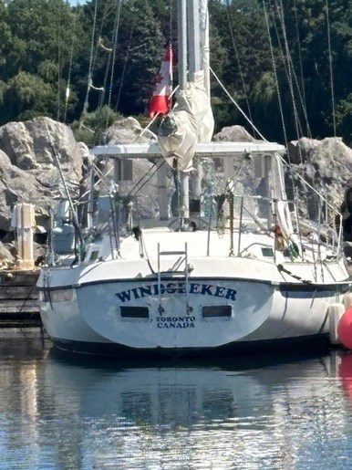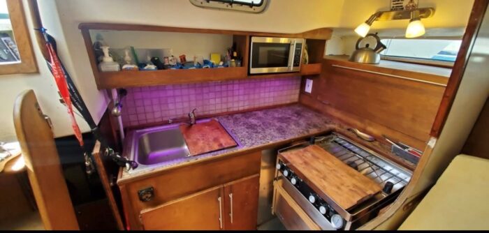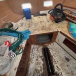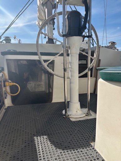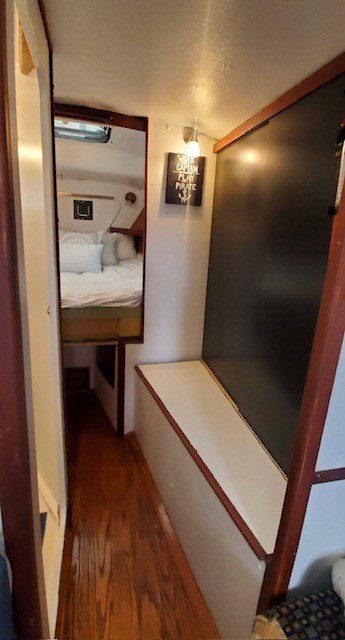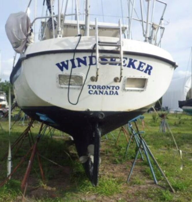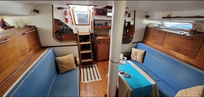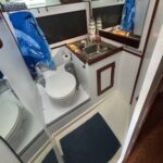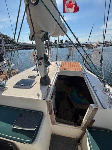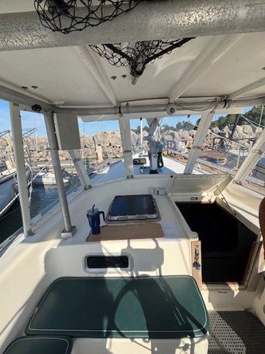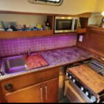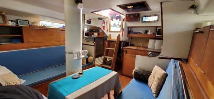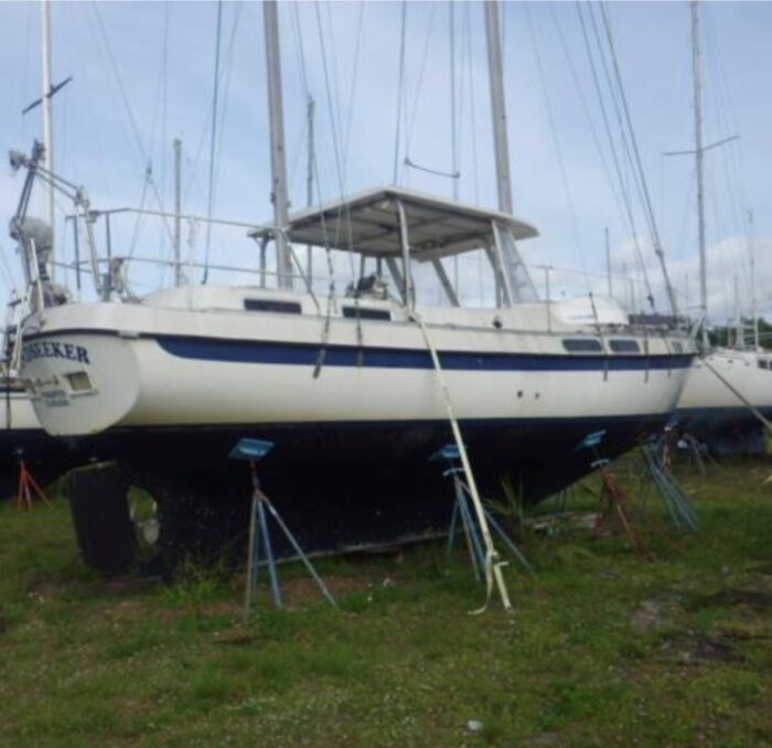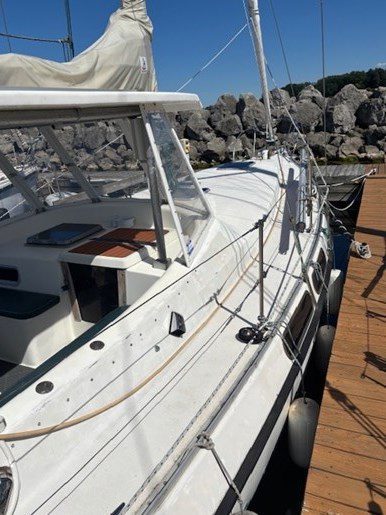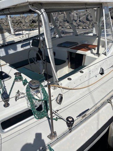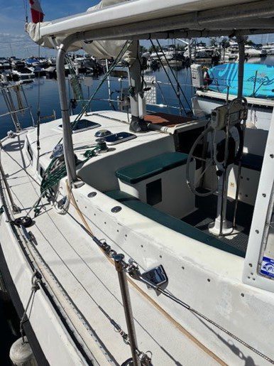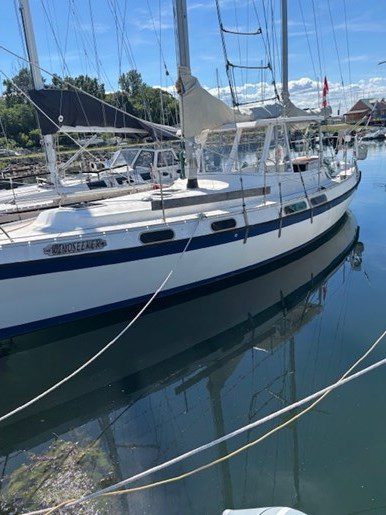 A centre cockpit ketch, she has been maintained and upgraded by a marine professional. 85 hp Perkins diesel with only 1000 hrs since complete rebuild. Hardtop over cockpit, with solid windows, and an extensive list of upgrades, this vessel is ready to go anywhere. There are some cosmetic issues that need to be addressed. The aft stateroom does need finishing. The aft head is functional but does needs finishing as well. The “walkover” feature separates fore and aft living spaces. Boat is in the water and and available to view most anytime until haulout in October.