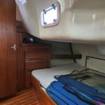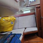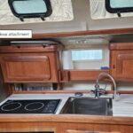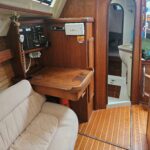 Powered by a reliable Yanmar 3HM35F diesel engine, she is equipped with a strong electronics package including a Simrad NSS9 display, ST4000 autopilot, B&G multifunction instrument, Standard Horizon Explorer VHF with RAM mic, and Standard Horizon 390i chartplotter.