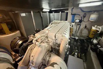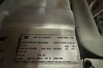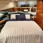 Performance is equally impressive. Powered by twin Caterpillar diesel engines — typically the 3196 model producing around 640 to 660 horsepower each — the 540 delivers cruising speeds in the 20-knot range and can reach top speeds near 25 knots. The modified-V hull and wide beam provide excellent stability and a smooth, dry ride in a variety of sea conditions. With fuel capacity of approximately 800 gallons, she is well-suited for long passages or island-hopping adventures.