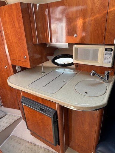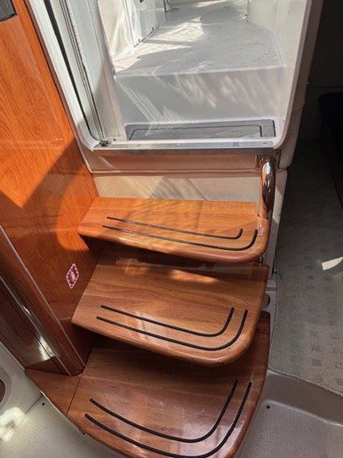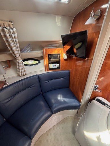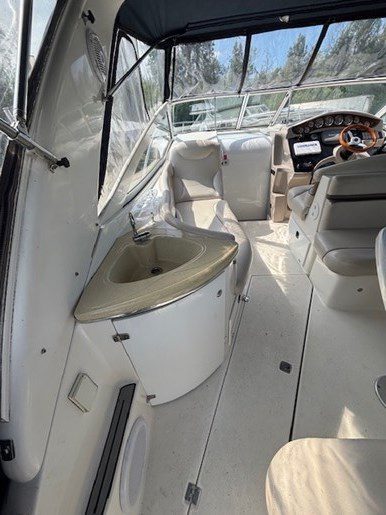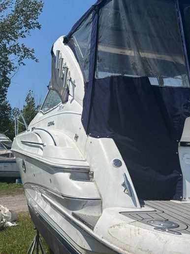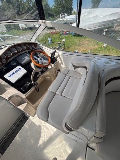 This is a quality, Canadian built cruiser in nice condition. Twin 5 L Mercs, 362/390 hrs, B3 drives, genny, Reverse A/C, recent out drive service done with bellows, gimbal bearings, impellers, and more. Full galley, premium cabinetry,Vacuflush head, sleeps 4 in comfort. Full camper canvas. Upholstery and soft goods in nice condition.