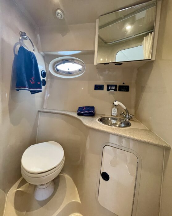 As an additional liveaboard luxury, the 320 features a roomy head, unsurpassed in this size class, with full standing headroom.