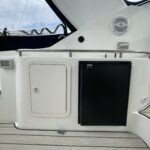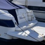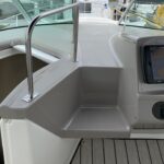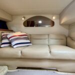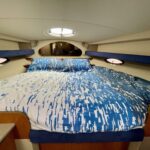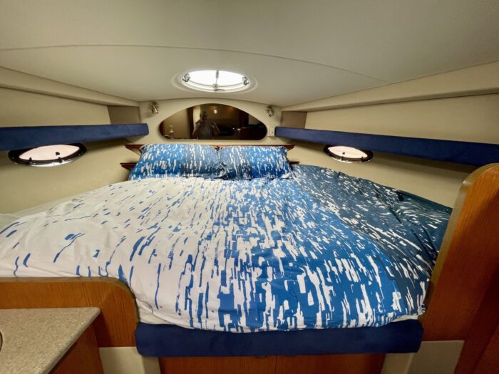 This well-thought-out cockpit arrangement also includes a cockpit shower, should a delightful summer day call for entertaining on the water. Beneath her sleek express exterior, the 320 achieves an impressive “family room” feel with an airy salon, lovely detailing and elegant appointments. She offers wide-open living space from the forward stateroom to the comfortable aft settee, and she offers more headroom than any boat in her class. Three large ventilating skylights bathe the interior with plenty of natural light. The large forward stateroom includes a generous double berth, ample storage space and a privacy curtain.