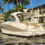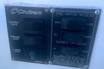 The 2014 Cruisers Yachts 380 Express is a stylish, comfortable 38-footer that feels bigger than its length suggests. Thanks to its wide beam and smart layout, the boat offers a lot of usable space, both in the cockpit and down below. Up on deck, the cockpit is set up for relaxing and entertaining, with generous seating, a well-appointed wet bar, and an optional power sun lounge at the stern that’s great for stretching out by the water. The swim platform is large and easy to step onto, making it a perfect spot for swimming or loading gear.