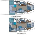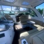 Inside, the 380 Express has a warm, contemporary feel. The salon benefits from big hull windows that bring in plenty of daylight, and the wood cabinetry and finishes give it a refined look. The galley is fully equipped for weekends aboard, and the seating area can convert for extra guests on some layouts. The forward stateroom has an island berth with good storage, and the head features a separate shower stall—something you don’t always get in a boat this size.