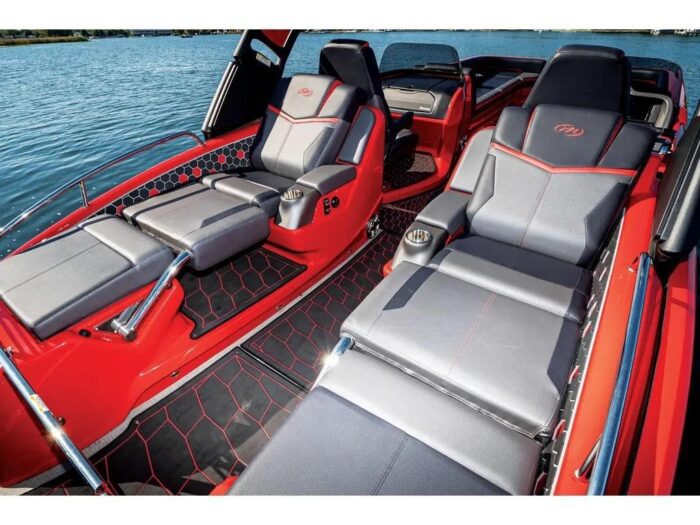Experience unparalleled performance and style with the 2023 MANITOU, featuring a striking Chalk Gray & Magma Red exterior and powered by the robust MERCURY 300 PRO XS engine. With 600 horsepower at your command, this masterpiece is designed for those who demand the best in power and luxury on the water.